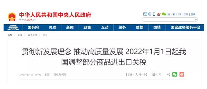經(jīng)國(guó)務(wù)院批準(zhǔn),國(guó)務(wù)院關(guān)稅稅則委員會(huì)印發(fā)通知,2022年將調(diào)整部分商品的進(jìn)出口關(guān)稅。為完整、準(zhǔn)確、全面貫徹新發(fā)展理念,支持構(gòu)建新發(fā)展格局,繼續(xù)推動(dòng)高質(zhì)量發(fā)展,經(jīng)國(guó)務(wù)院批準(zhǔn),國(guó)務(wù)院關(guān)稅稅則委員會(huì)印發(fā)通知,2022年將調(diào)整部分商品的進(jìn)出口關(guān)稅。
