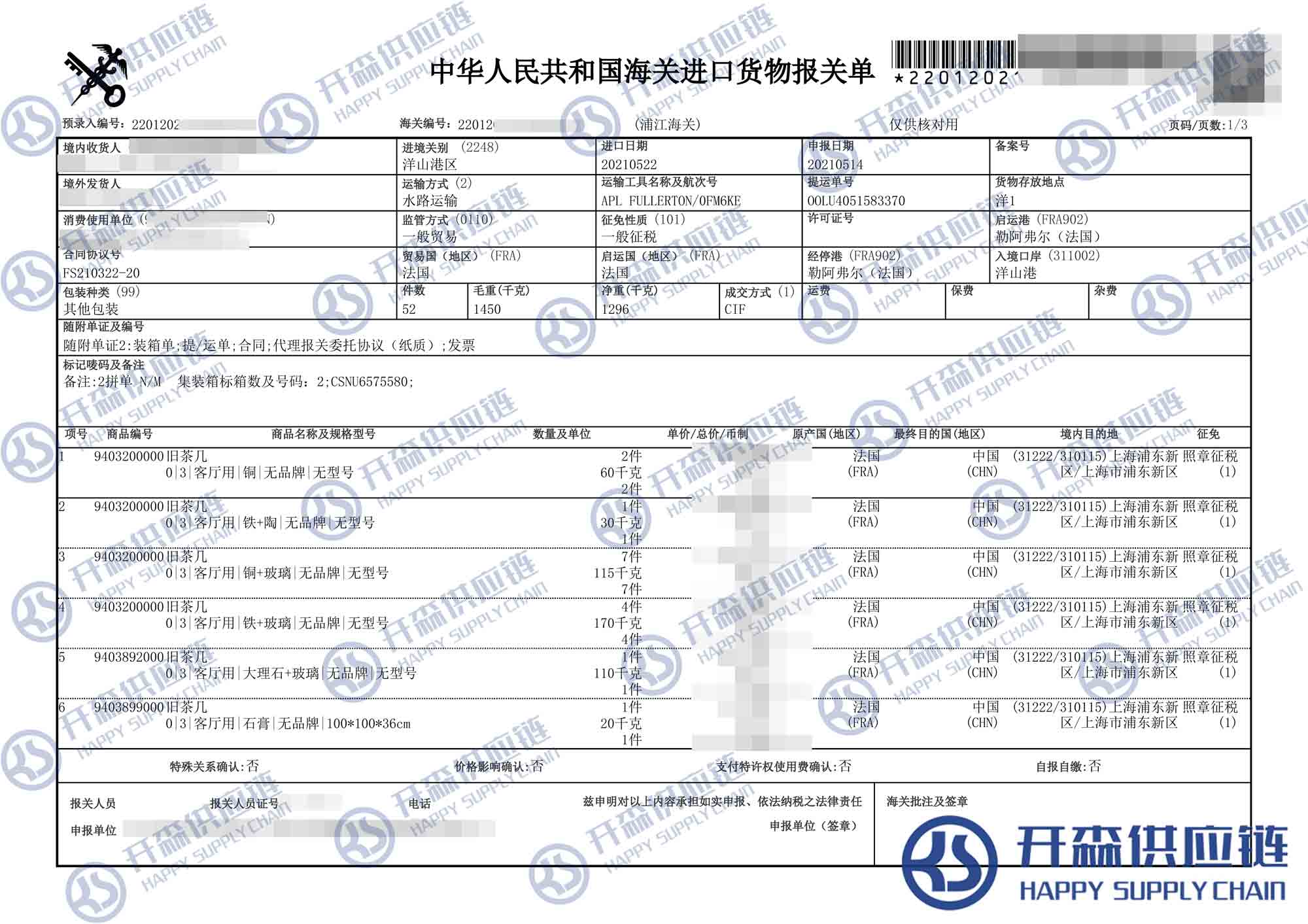 一、法國(guó)二手舊茶幾家具進(jìn)口報(bào)關(guān)代理案例詳情
