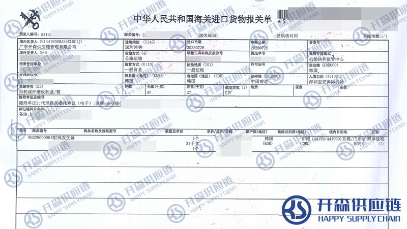 【本文結語】 上述就是深圳機場韓國X射線設備進口報關代理服務【清關案例】的全部內容,希望能對您有所幫助,如有機械進口報關上任何疑問及問題可隨時在線聯系我們或撥打 18002611553,開森供應鏈擁有豐富的機械進口報關操作經驗及案例,10余年進口經驗為您所用,各類進口疑難都能為您一一解答及協助快速處理解決!