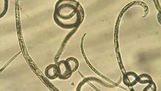 ★病原物形態(tài):線蟲體纖細(xì),表面光滑,有環(huán)紋。雌蟲卵巢前伸,上陰唇長,形成陰門蓋,尾近圓柱形,尾端鈍圓;雄蟲尾尖,似爪狀,交合刺大,弓形,成對(duì),基部有一大而尖的喙,交合刺末端有一凸出物,尾端有一卵圓形的交合傘。