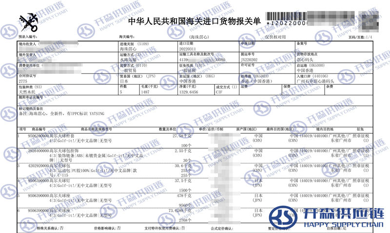 由于高爾夫球桿用品有不同的HS編碼,所以高爾夫球桿用品的監管條件、申報要素等都是有所區別的,如果您正在找報關代理公司,開森能免費幫助客戶歸類編碼