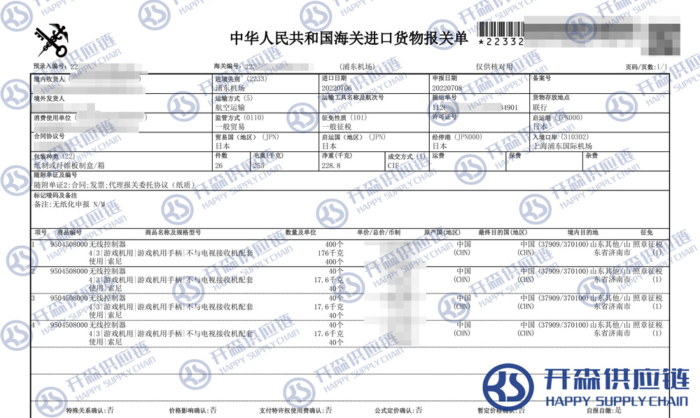 【本文結語】 上述就是日本索尼PS5游戲機進口清關報關代理服務【經典案例】的全部內容,希望能對您有所幫助,如有游戲機進口報關上任何疑問及問題可隨時在線聯系我們或撥打 18002611553,開森供應鏈擁有豐富的游戲機進口報關操作經驗及案例,10余年進口經驗為您所用,各類進口疑難都能為您一一解答及協助快速處理解決!