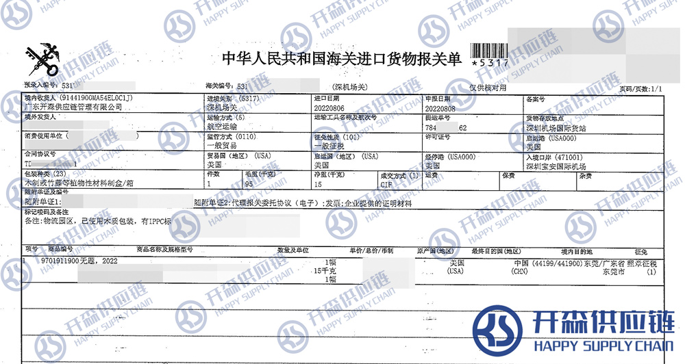 【本文結語】 上述就是美國油畫進口報關清關代理服務案例【經典案例】的全部內容,希望能對您有所幫助,如有油畫進口報關上任何疑問及問題可隨時在線聯系我們或撥打 18002611553,開森供應鏈擁有豐富的油畫進口報關操作經驗及案例,10余年進口經驗為您所用,各類進口疑難都能為您一一解答及協(xié)助快速處理解決!