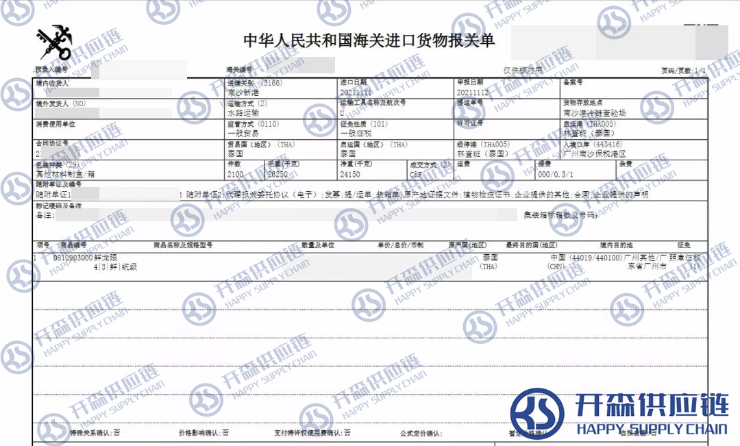 【導讀】您正在閱讀的是關于泰國鮮龍眼進口清關報關代理服務【經典案例】的內容,本文由開森水果進口報關代理小編整理編寫;